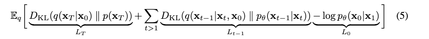 - 로 부터 diffusion process을 통해서 최종적으로 만들어진 데이터 분포와 noise 의 분포가 닮을 수록 작아짐.