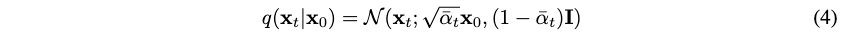 이때 주입하는 noise는 아래와 같은 분포로 따르게 주도록 되어 있음. 는 주어지는 상수값으로 에 따라서 스케쥴링할 수 있음.