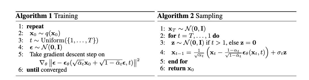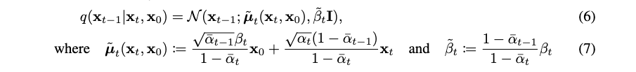 - : 역방향 과정에서 평균을 예측하는 신경망 → 즉, 우리가 배우고 알아야할 것은 이 따르는 평균값만 예측할 수 있다면 우리는 과거를 추정할 수 있게 된다.
